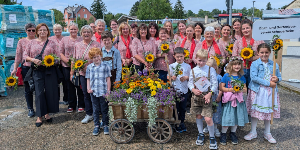 Auch wir beteiligten uns mit einer Fußgruppe und einem mit Blumen geschmückten Leiterwagen. Wir marschierten mit Musik, Sonnenschein und guter Laune durch die mit zahlreichen Zuschauern gesäumten Straßen. Die Besucher applaudierten begeistert, was die gute Stimmung noch weiter steigerte.